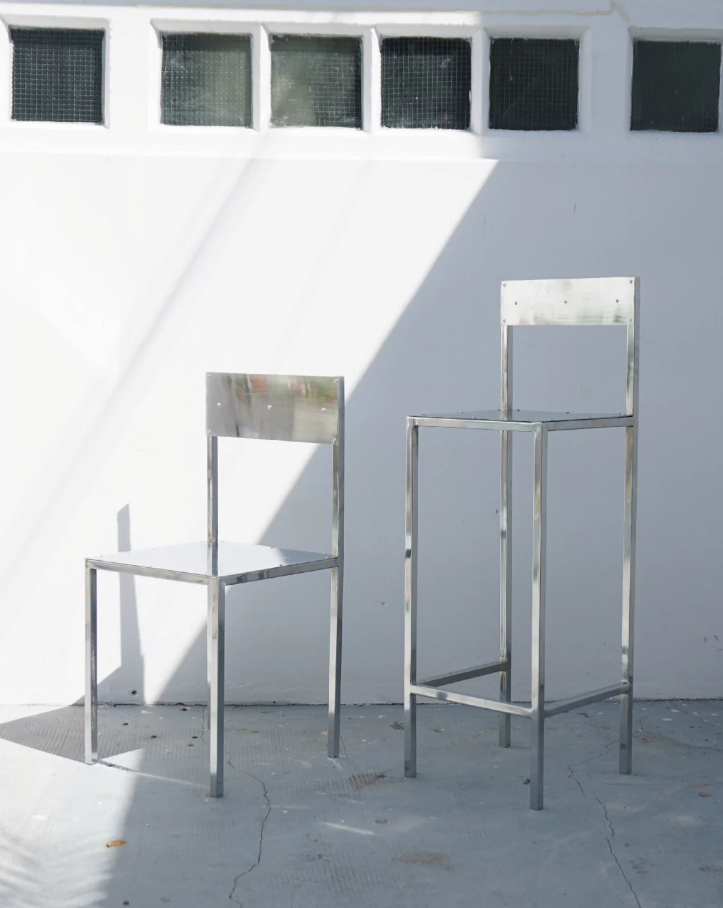 Hecha con caño cuadrado y chapa cromada mate.