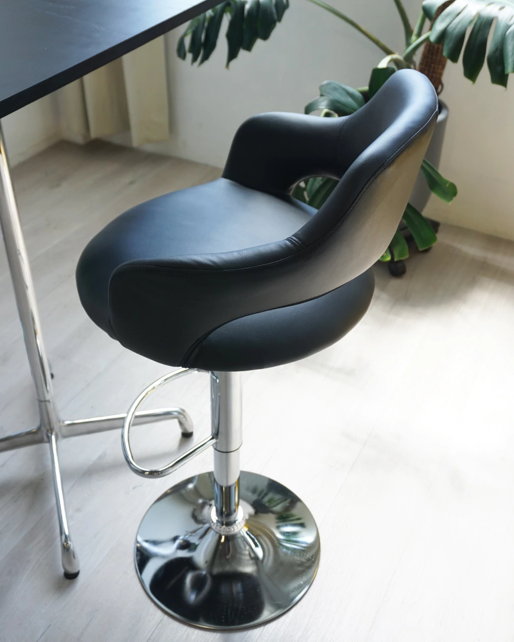Materiales: Base para regular la altura del asiento cromada y tapizado en ecocuero.