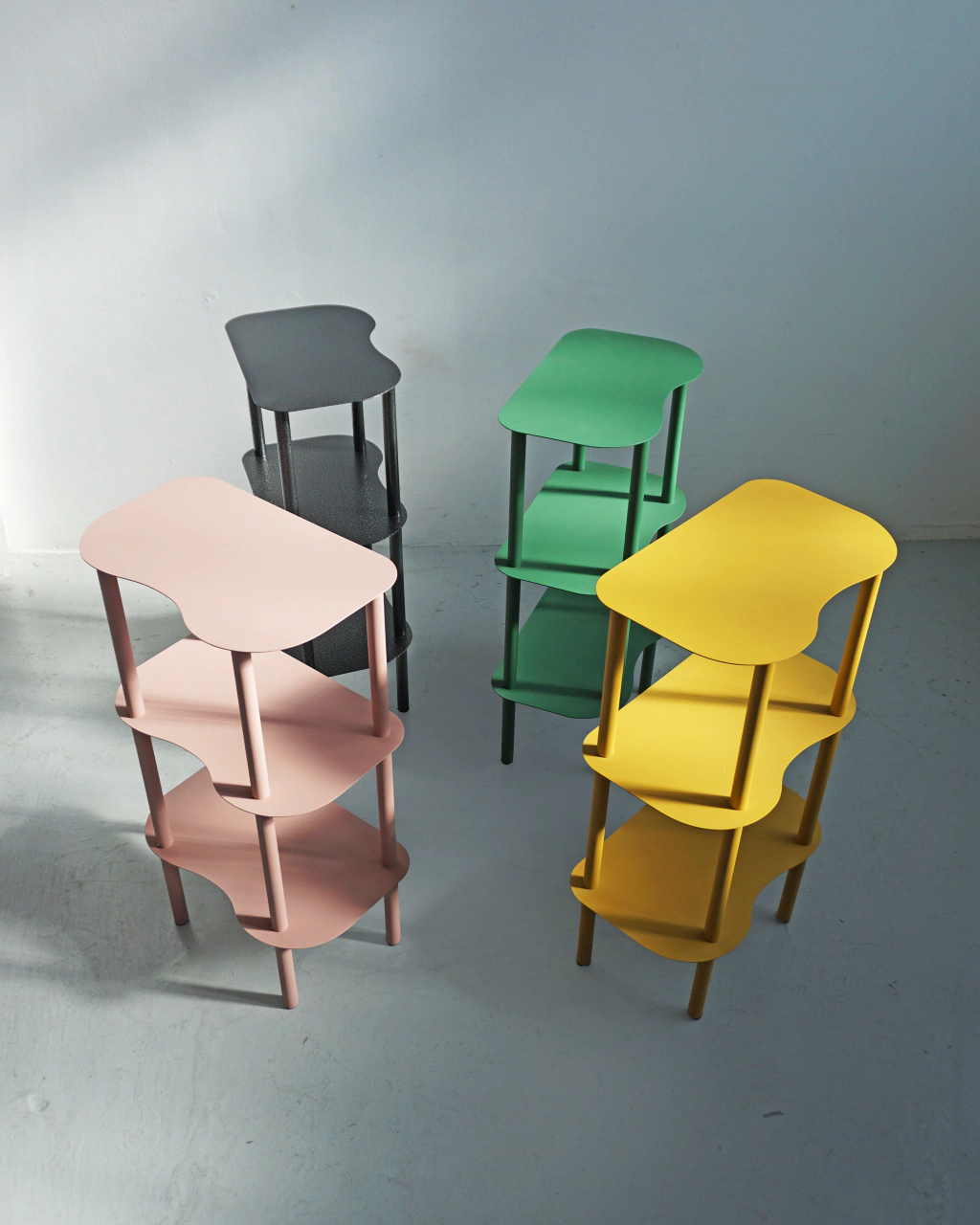 3 Estantes de chapa y estructura de caño.