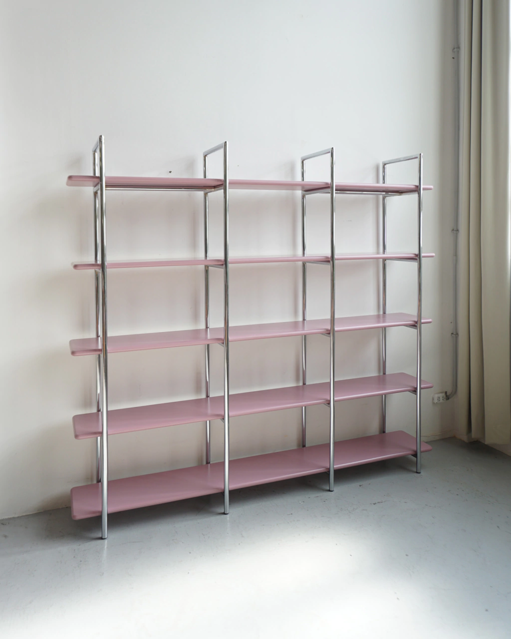 5 Estantes laqueados y estructura de caño cromada. Color a elección.