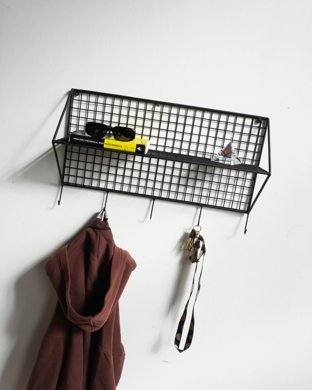 Estanteria/Perchero realizado con varilla y enrejado